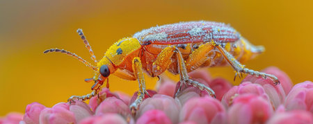 This small insect is captured up close showcasing its detailed features against a vibrant background highlighting the beauty of nature.