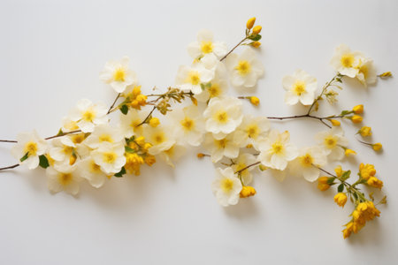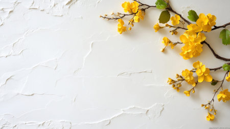 A close-up shot of yellow flowers on a white textured surface, creating a minimalist floral design.