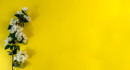 Flat lay with copy space for the wedding, birthday, party or other celebration, Beautiful White Jasmine Flowers