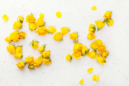 2021 new year made from yellow Chrysanthemum flower petal on white background