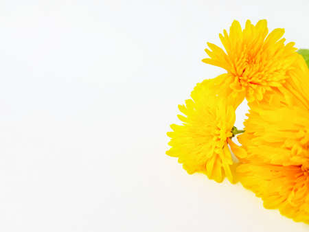 Yellow flower chrysanthemums on a white background. A greeting card. . High quality photo