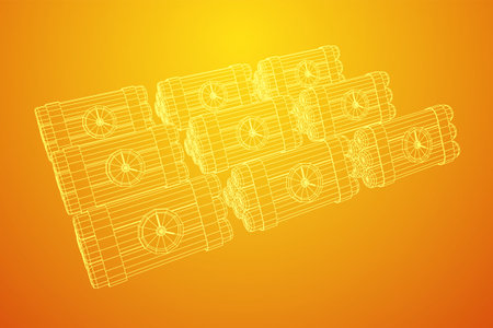 Dynamite Bomb with Countdown Clock. Military Detonate Weapon. Wireframe low poly mesh vector illustration