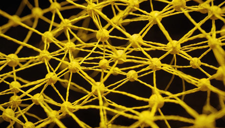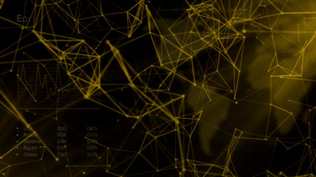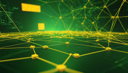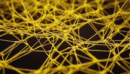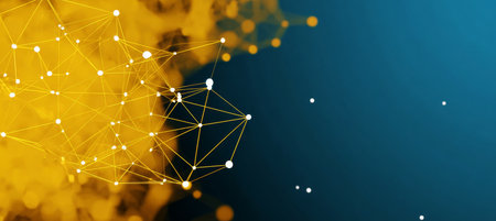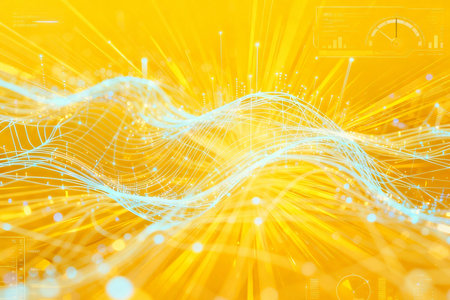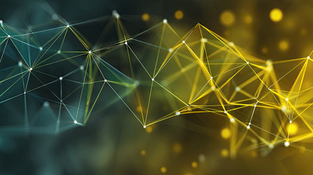 Explore a visually striking abstract background featuring intricate network connections illuminated by vibrant lights in shades of yellow and blue.