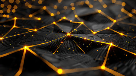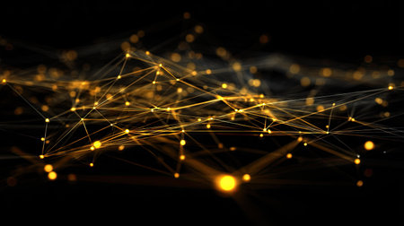 A captivating arrangement of glowing golden points interconnected by delicate lines against a dark background, evoking a sense of depth and intrigue in a digital artwork.