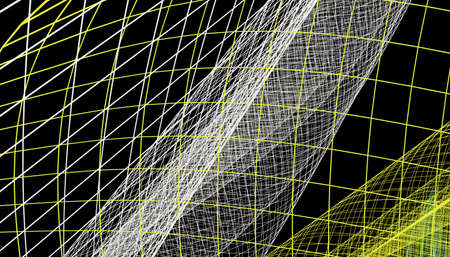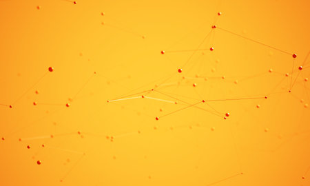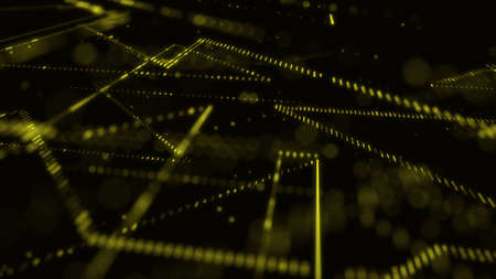 abstract yellow background with wireframe lines and dots, 3d render