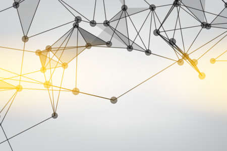 Abstract 3d rendering of network structure with yellow spheres. Technology background.