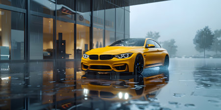 A sleek yellow car stands out against a bold yellow and black backdrop, showing its minimalist design and polished look in a striking visual.