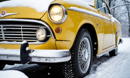 Vibrant Closeup: Capturing the Beauty of a Yellow Car --ar 3:2