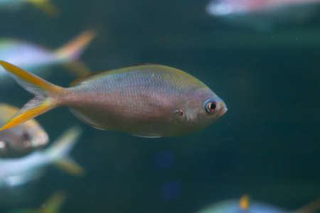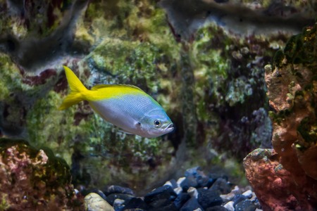 Close up of a yellow snapper in an aquarium. Shallow depth of field