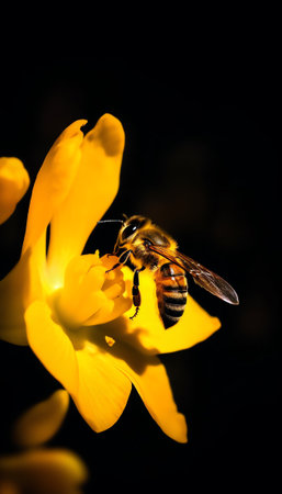 Stunning close-up of a busy bee pollinating a vibrant yellow flower, capturing the essence of nature's beauty and vital ecological processes