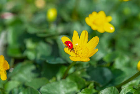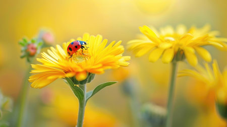 Ladybug on a yellow flower, macro shot, shallow depth of field