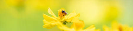 Coreopsis pubescens, called star tickseed in common. Yellow flower in the garden. Descktop floral background. Bee on coreopsis. bee on flower