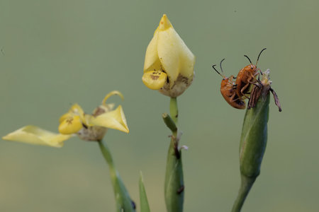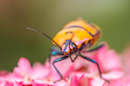stink bug is staying on the flower bud