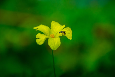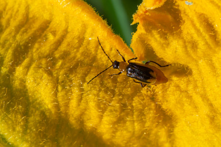 Black cucurbit beetle on the flower of luffa