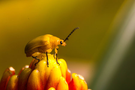 Yellow beetle eating flower