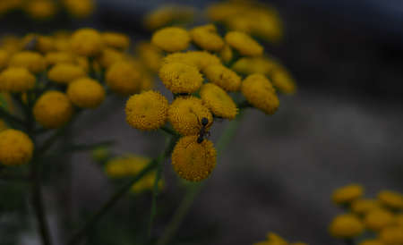 an ant crawls on a flower, a yellow flower close up