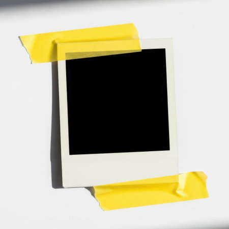 Blank photos on a yellow background. The concept of preserving memories. Flat lay. Copy space. Banner.