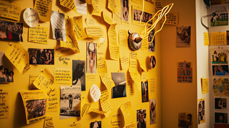 A person examines an old portrait in a collection of vintage photographs, surrounded by aged images and memorabilia, evoking nostalgia and curiosity about the past.