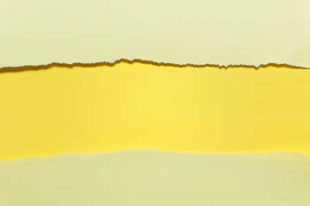 abstract background concept with ripped blank white paper on vivid yellow paper, copy space for your text.