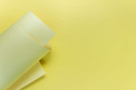 Creative background with yellow paper roll, fold on yellow background. Image with copy blank space.