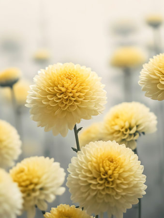 Generative AI : Beautiful flowers macro abstract art background with a soft focus Yellow flowers chrysanthemum in nature on lilac background