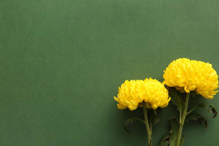 Yellow chrysanthemum flowers on green background