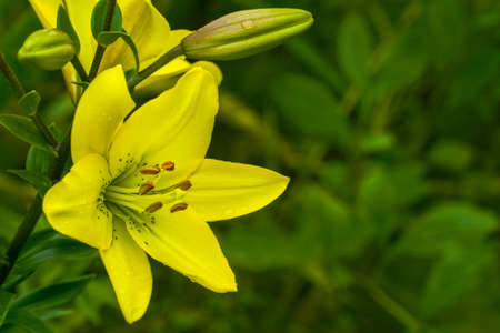 Yellow lilies flowers on green background