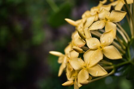 Wet small yellow indian flower blooming.