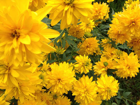 bright fresh yellow flowers in a pile close-up. natural surface texture