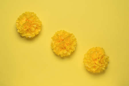 Vibrant Bouquet of Yellow Marigold Flowers Isolated on a Yellow Background with Ample Copy Space