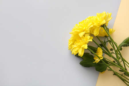 Yellow chrysanthemum flowers on light background