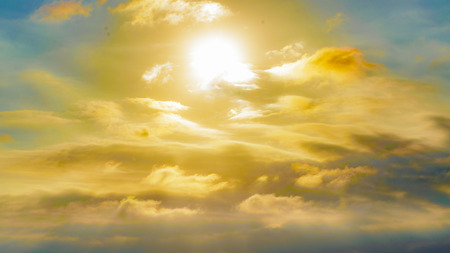 bright yellow gold with sun rays light in sky with dim clouds