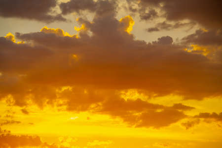 Background of storm clouds before a thunder-storm During this period, beautiful golden yellow sunset.