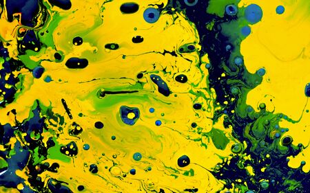 Yellow, green and black watercolor ink in oil water. Cool trending screensaver. Abstract trending background.