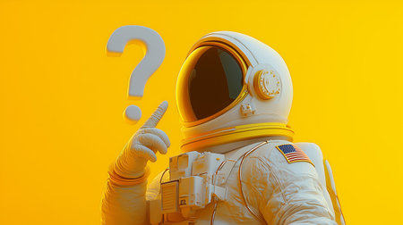 Astronaut with a question mark above the helmet pointing up.