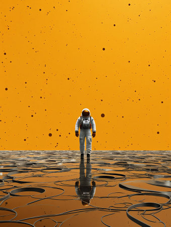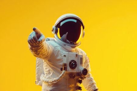 Astronaut pointing forward with vibrant yellow background