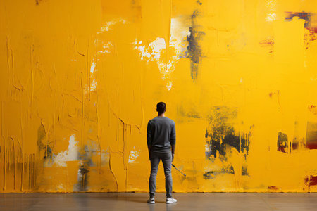 An AI generated illustration of a man standing against a painted yellow wall