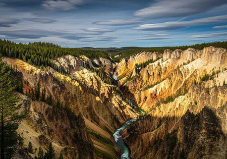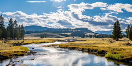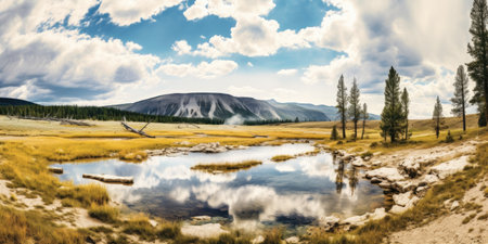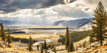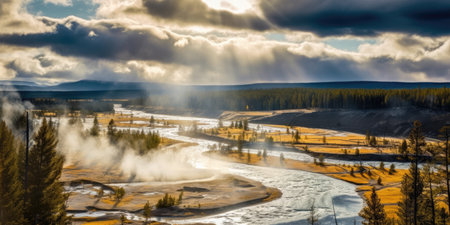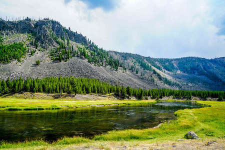 A beautiful overlooking view of nature in Yellowstone National Park, Wyoming