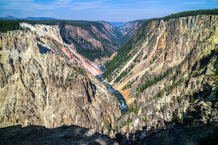 View of the Yellowstone River from the Calcite Springs overlook in Yellowstone National Park Wyoming