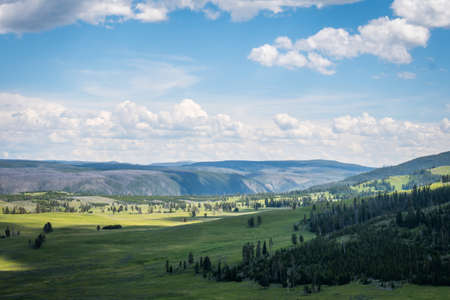 View from the hill of the beautiful Yellowstone Caldera, also known as Supervolcano, in Yellowstone National Park, Wyoming, USA