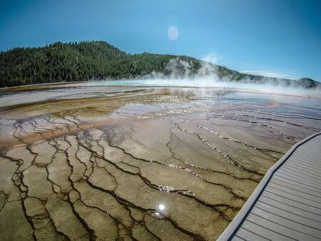 Grand Prismatic Spring, one of the main tourist attractions of Yellowstone national park is the largest hot spring in the US