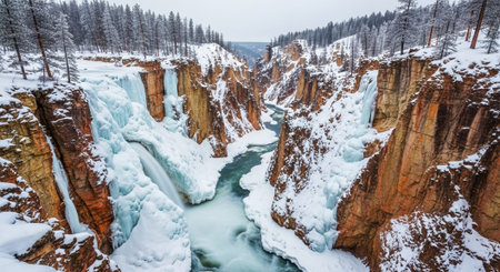 A stunning view of a deep canyon with rugged, layered rock walls and a winding turquoise river below.