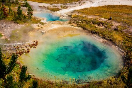 Beautiful geyser in Yellowstone national park in US, the most wonderful park of US, geothermal area in Wyoming