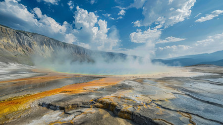 Discover the breathtaking beauty of vibrant hot springs in Yellowstone National Park, showcasing stunning mineral deposits and surrounding mountains.