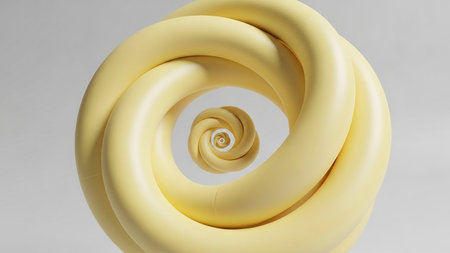 showing pale yellow abstract toroidal sculpture with infinite spiral effect and soft lighting. resolution use.