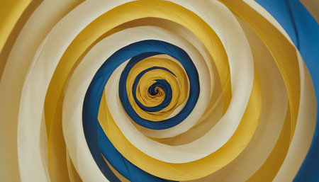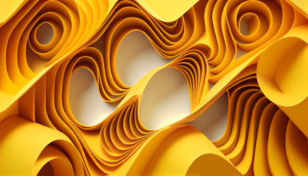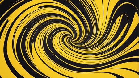 A vibrant, swirling pattern in shades of yellow elegantly draws the eye into its spiral formation, evoking a sense of motion and warmth. The smooth curves create a striking visual experience.