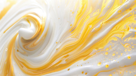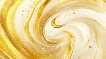 Swirling gold and white abstract design. Macro shot with copy space. Luxury and fluid art concept for design and print