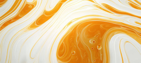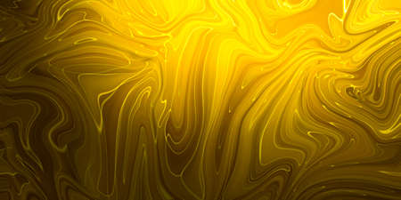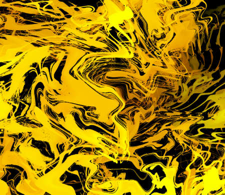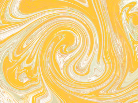 Abstract swirl background. Mesh liquid surface digital illustration. Mesh texture with yellow paint drips. Abstract pattern of marble or wood. Bright suminagashi ink for web design or digital paper