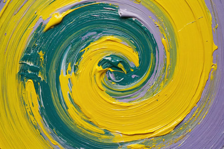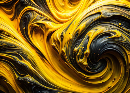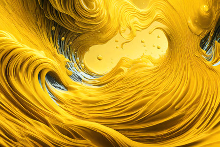 Captivating swirl of vibrant yellow acrylic paint with a glossy texture, perfect for creative projects and artistic backgrounds, showcasing fluid motion and unique patterns.