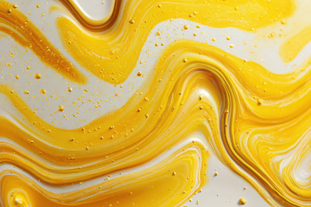 abstract background of yellow and white paint with swirls and waves